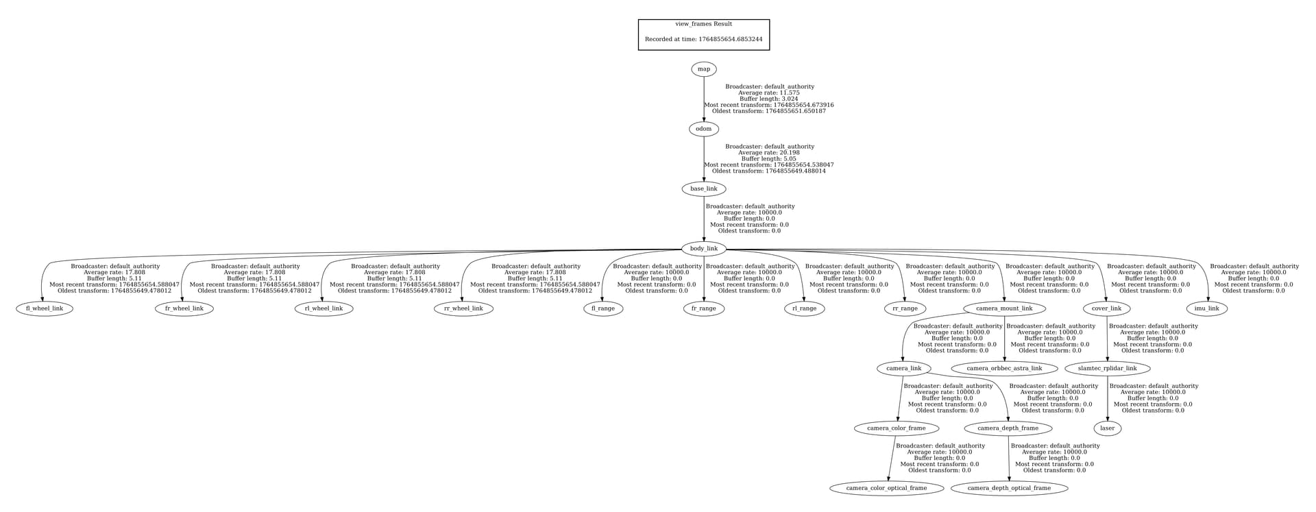 Since I haven’t used ROS 2 Tutorials in over a year, that’s where this example came from. I haven’t been able to reproduce this error. Looking at the TF tree, everything looks fine. There’s both a map → base_link and a base_link → laser connection (which is in the /scan / /scan_filtered message).